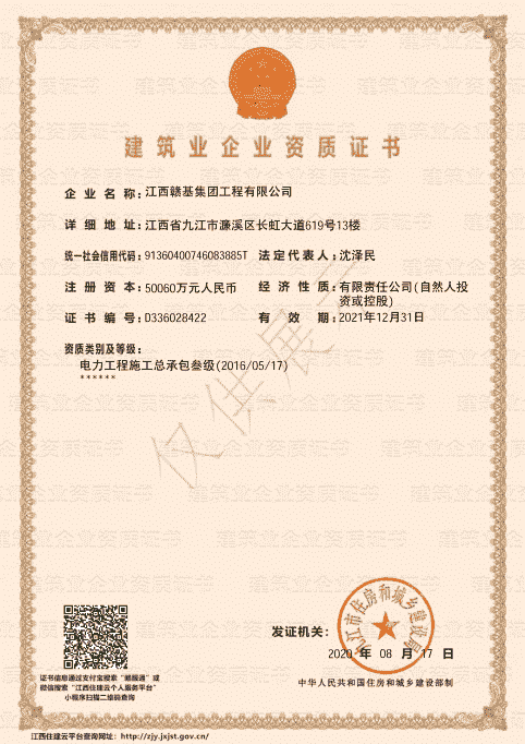江西贛基集團工程有限公司是國家壹級施工總承包企業(yè),具有公路工程、市政公用工程、房屋建筑工程總承包壹級資質(zhì);公路路基、路面專業(yè)壹級;水利水電工程、電力工程、城市園林綠化、公路養(yǎng)護工程貳級資質(zhì)。